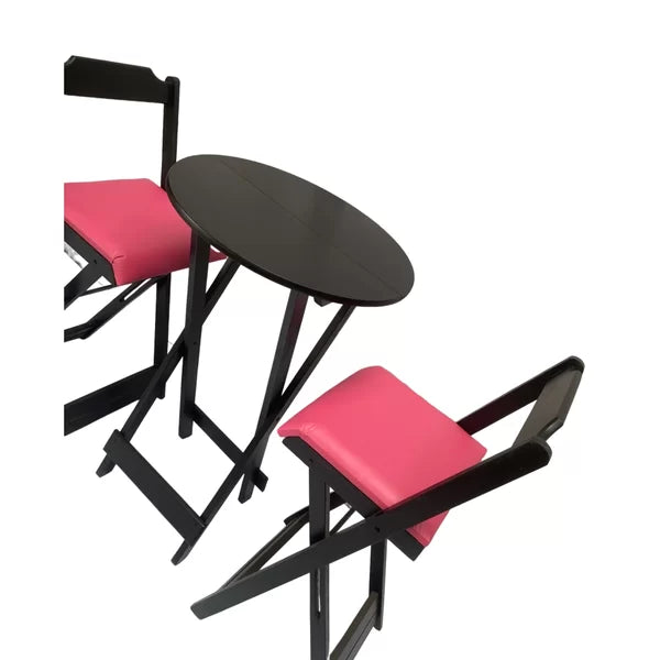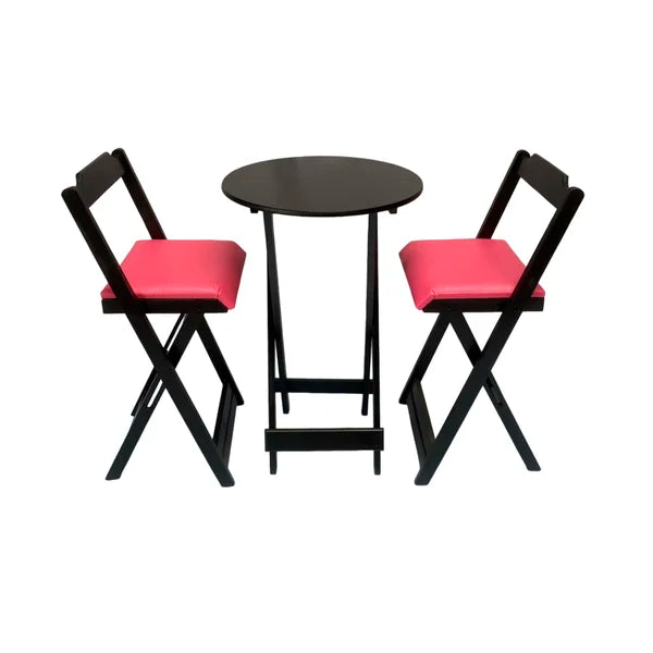 Conjunto Bistró Plegable con Banquetas Acolchonadas – Rosa